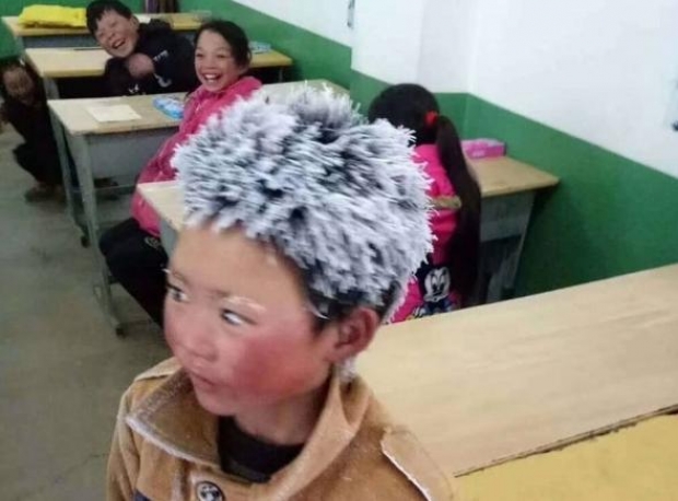 Një tjetër e veçantë është se Wang Manfu është nxënësi me rezultate më të mira në klasë, ndërsa në shkollë renditet i pari për matematikë. Siç shihet edhe nga fotoja 10 vjeçarit i kanë ngrirë flokët ndërkohë shokët dhe shoqet e klasës qeshin.