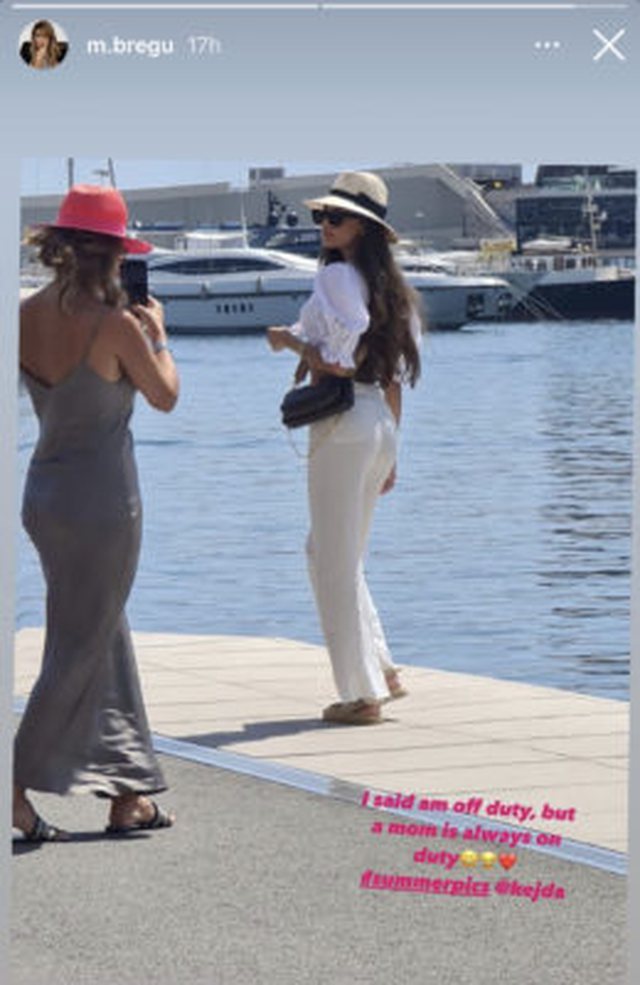 “Jam me pushime nga puna, por nuk ka pushime si mama”, shkruan me të qeshur Majlinda, krah fotos ku shfaqet duke i bërë foto vajzës së saj.