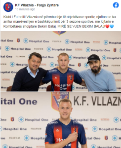 “Klubi i Futbollit Vllaznia në përmbushje të objektivave sportiv, njofton se ka arritur marrëveshjen e bashkëpunimit për 3 sezone sportive, me lojtarin e Kombëtares shqiptare Bekim Balaj. MIRË SE VJEN BEKIM BALAJ”.