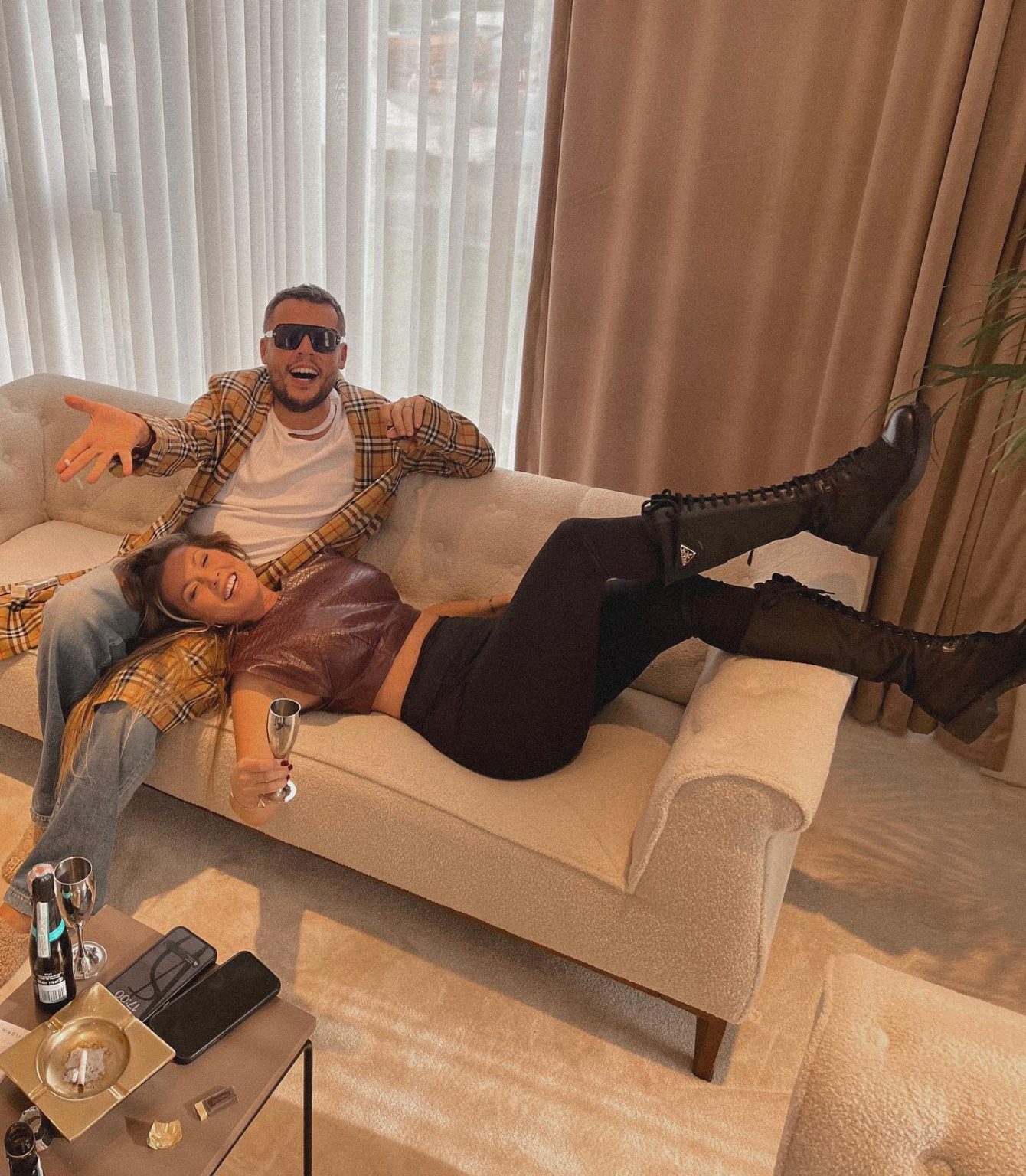 Dyshja duken të qeshur në dy fotografi të përbashkëta që kanë ndarë me ndjekësit e tyre në Instagram, teksa shijojnë nga një gotë shampanjë.