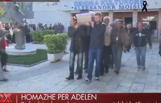 Pas përfundimit të homazheve në kujtim të gazetares së njohur Adelajda Xhamani, trupi i pajetë po përcillet për në banesën e fundit.