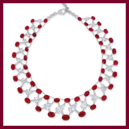 8. “Ruby and Diamond Latticework Necklace”, 120.74 karat (13,006,656 dollarë)