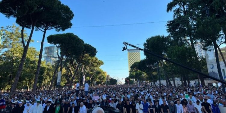 Besimtarët myslimanë festojnë sot Kurban Bajramin, festën më të rëndësishme në kalendarin e myslimanëve. Besimtarët u mblodhën në bulevardin ‘Dëshmorët e Kombit’ për faljen e namazit të Kurban Bajramit. Falja nisi në orën 06:00.
