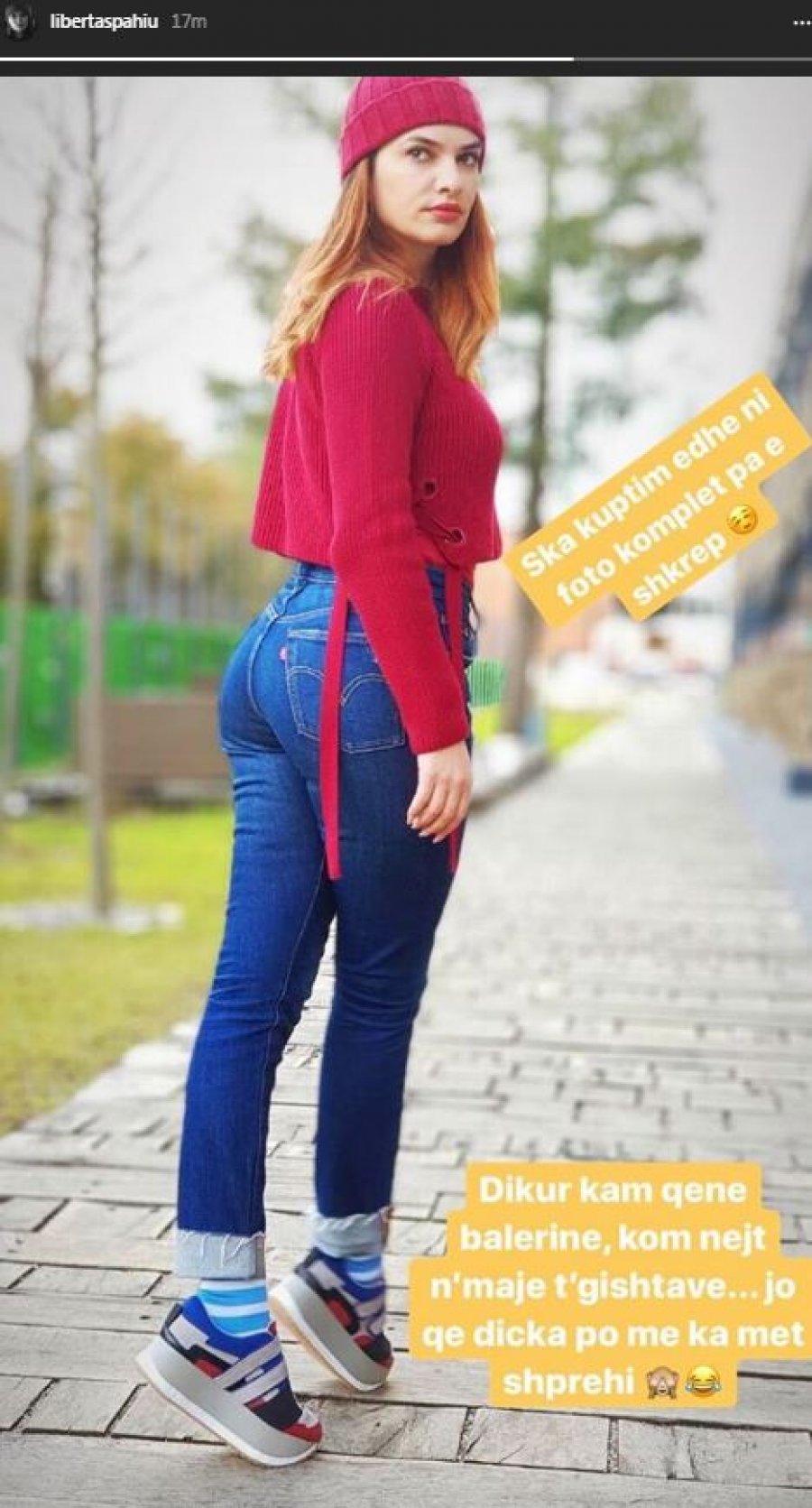 E prej aty e shohim në super formë dhe veshur thjeshtë e këndshëm, transmeton Indeksonline. Duke qenë se fotografin e kishte realizuar duke ndenjur në maje të gishtave, ajo jep edhe arsye për këtë gjë”. Image result for liberta spahiu