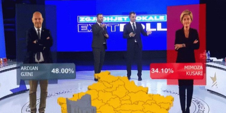 Ardian Gjini i AAK do të dalë i pari në këtë komunë, duke marrë 48% të votove, ndërsa Mimoza Kusari nga LVV-ja është e dyta me 33%.