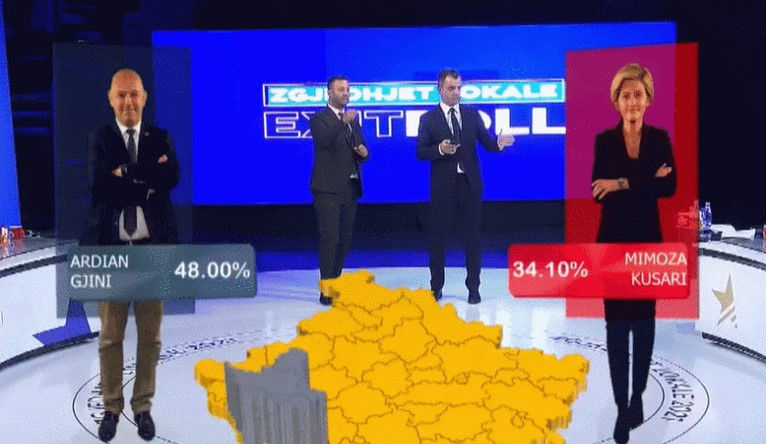 Ardian Gjini i AAK do të dalë i pari në këtë komunë, duke marrë 48% të votove, ndërsa Mimoza Kusari nga LVV-ja është e dyta me 33%.