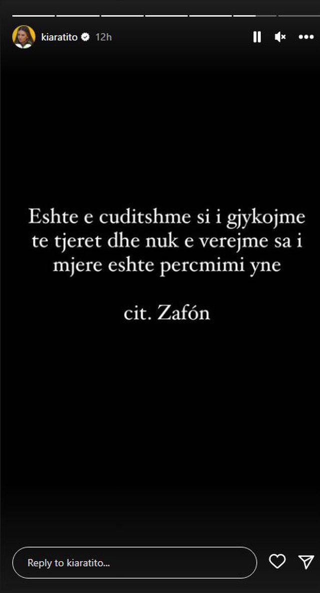 E duket se pas mbarimi të “Prime”-t, Kiara i ka thumbuar dy opinionistët me një citat të novelistit spanjoll, Carlos Ruiz Zafon.