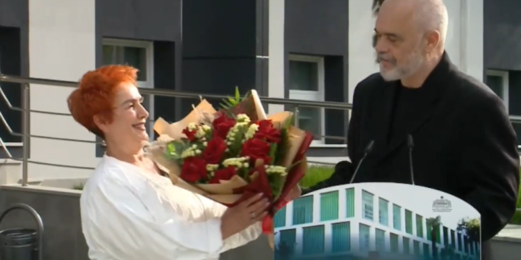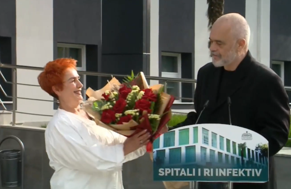 Teksa vlerësoi punën e tyre, në mënyrë simbolike për të gjithë mjekët, kryeministri i dha dhe një buqetë me lule drejtoreshës së Infektivit, mjekes Najada Çomo.