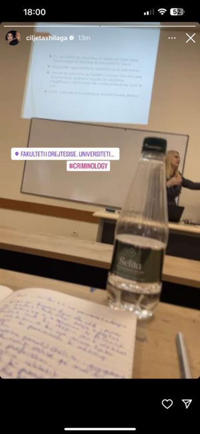 Ajo ka vendosur që t’i rikthehet shkollës si student në Universitetin e Drejtësisë, në degën e Kriminologjisë, teksa pamjet i ka ndarë në “Instastory”.