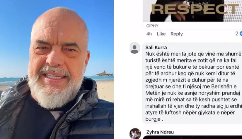 Qytetari: Nuk është merita jote që vijnë shumë turistë, është merita e Zotit që na ka falur një vend të bukur e të bekuar, por është për të ardhur keq që nuk kemi ditur të zgjedhim njerëzit e duhur për të na drejtuar, se edhe ti njësoj me Berishën e Metën je, nuk ke asnjë ndryshim, prandaj më mirë rri rehat sa të kesh pushtet se Inshallah të vjen dhe ty radha, sikurse ju erdhi atyre të luftosh nëpër gjykata e nëpër burgje.