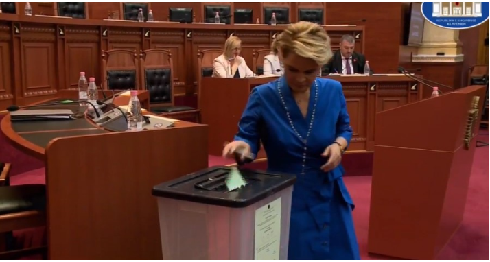 Kryemadhi ka qëndruar në sallën e Parlamentit, duke ka hedhur votën e saj për Bajram Begajn.