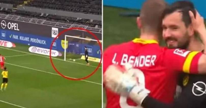 Portieri i Borussia Dortmund Roman Burki lejoi lojtarin e Bayer Leverkusen, Lars Bender të shënonte nga pika e bardhë e penalltisë në ndeshjen e tij të fundit të karrierës, pas së cilës ata e përshëndetën njëri-tjetrin ngrohtësisht.