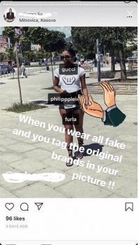 “Kur je e gjitha e veshur me fallco dhe bën tag gjithë brand-et origjinale në foton tënde!”– shkruan ai në foton e një vajze nga Mitrovica.