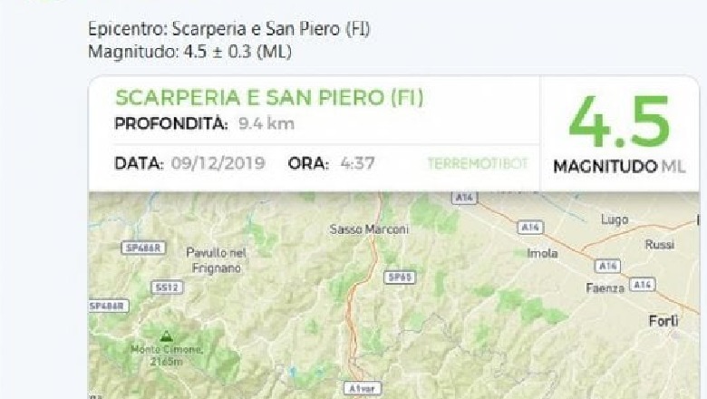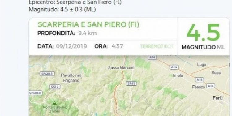 Një tërmet me madhësi 4,5 është regjistruar në Scarperia San Piero, në provincën e Firencës, në Mugello në orën 4,37 të natës. Lajmi është dhënë nga Instituti gjeofizik vullkanologjik kombëtar. Epiqëndra e goditjes ndodhej në një thellësi prej 9 km.
