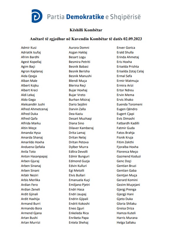 Në listën e anëtarëve të Këshillit do të jenë edhe kryetari i Partisë Demokratike, Lulzim Basha, dy anëtarë Kryesie në detyrë, 30 deputetë dhe 68 Anëtarë të kolegjit të kryetarëve në detyrë.