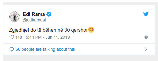Kryeministri Edi Rama i përgjigjet shkurtimisht Presidenti Ilir Meta në rrjetin social, Twitter, duke shkruar se zgjedhjet do të bëhen më 30 qershor shoqëruar me një “buzëqeshje”.
