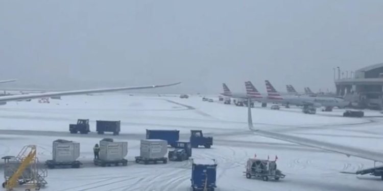 Më shumë se 1,400 fluturime u anuluan ditën e sotme në SHBA pasi një stuhi dëbore goditi shtetet nga Teksasi në Virxhinia Perëndimore. Gjithsej 1,467 fluturime të brendshme dhe fluturime për dhe nga Shtetet e Bashkuara u anuluan, ndërkohë 527 fluturime u vonuan që nga ora 6:48 e mëngjesit ET, sipas faqes së internetit të gjurmimit të fluturimeve FlightAware.