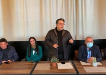 Drejtuesi Politik i Qarkut Durrës i Partisë Demokratike, Edi Paloka, në takimin e tij të radhës me banorët e Shkallnurit ...
