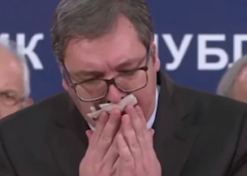 Presidenti i Serbisë Aleksandar Vuçiç sot u kollit shumë pasi piu ujë në konferencën për media. Ai u kollit për ...