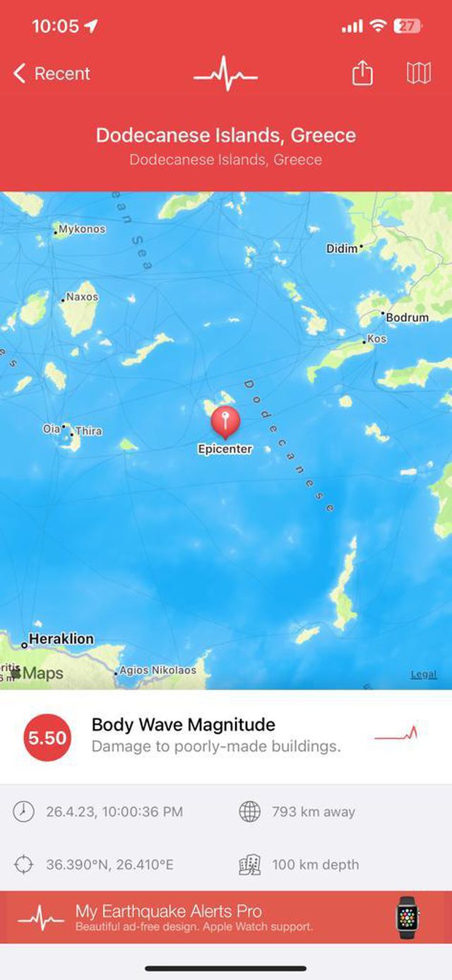 Tërmeti ka qenë i magnitudës 5.5 me epiqendër në ishullin Dodecanes, ndërsa thellësia ka qenë 100 kilometra.