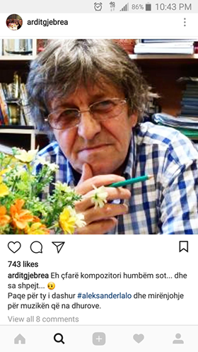 Përmes një statusi në rrjete sociale Gjebrea ka shprehur mërzinë e tin për këtë humbje të artit shqiptar. Lalo ndërroi jetë mbrëmjen e sotme si pasojë e një ataku kardiak.